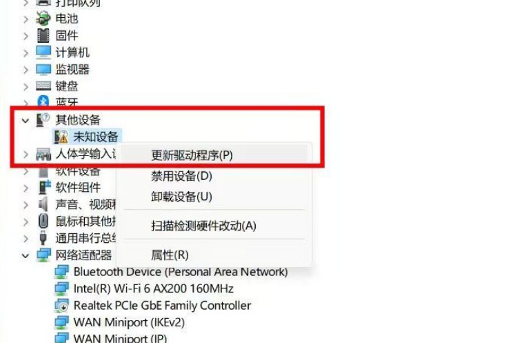 若没有出现未知设备 将驱动更新为 Composite USB Device 即可