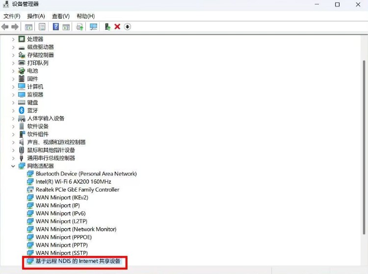 最后手动更新驱动后设备管理器会出现它,这样才能进行下一步的SSH登录操作